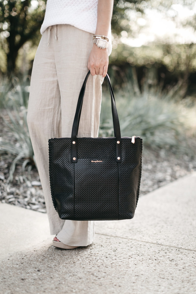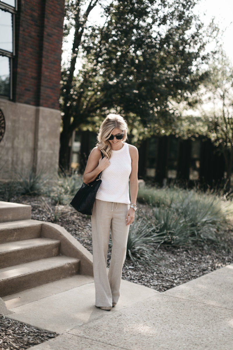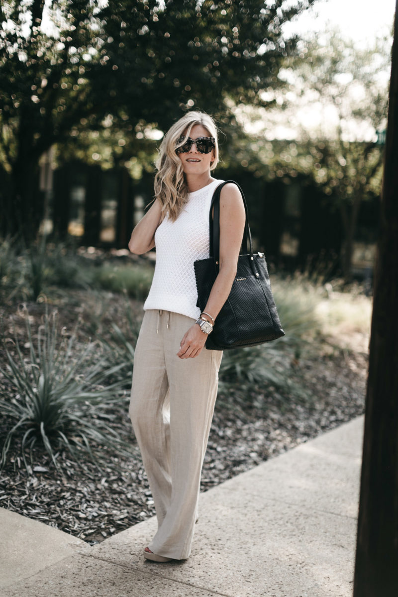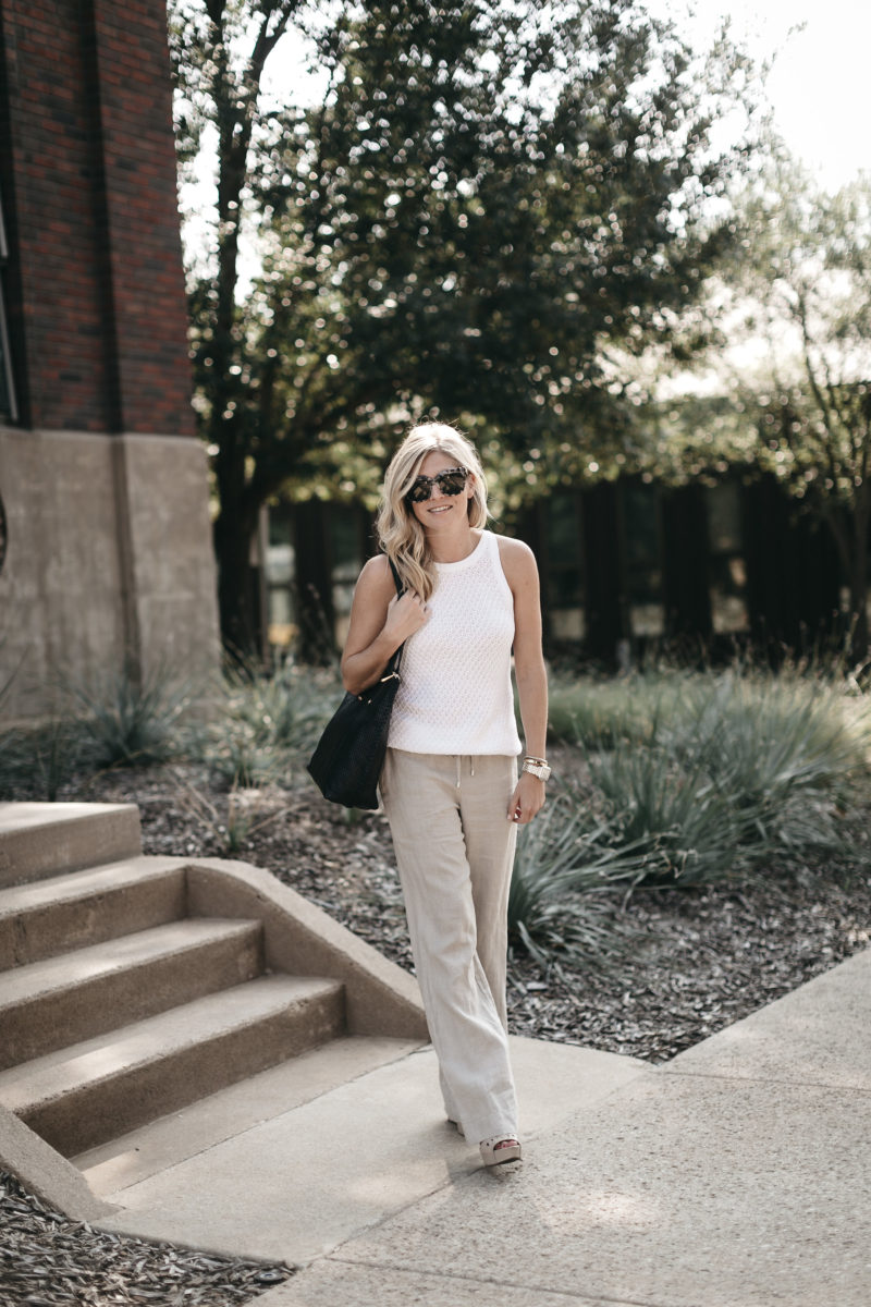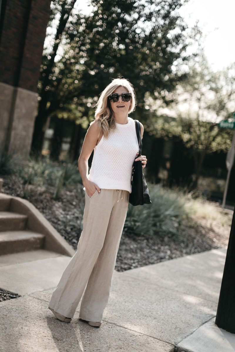 These linen pants are also crazy comfy! Also, they make my legs look super long and lean even though they are wide leg pants. I love that they have a draw string waist because I’ll definitely need the extra room after eating a delicious meal at the Tommy Bahama restaurant next door. Who is a fan of the coconut shrimp?!