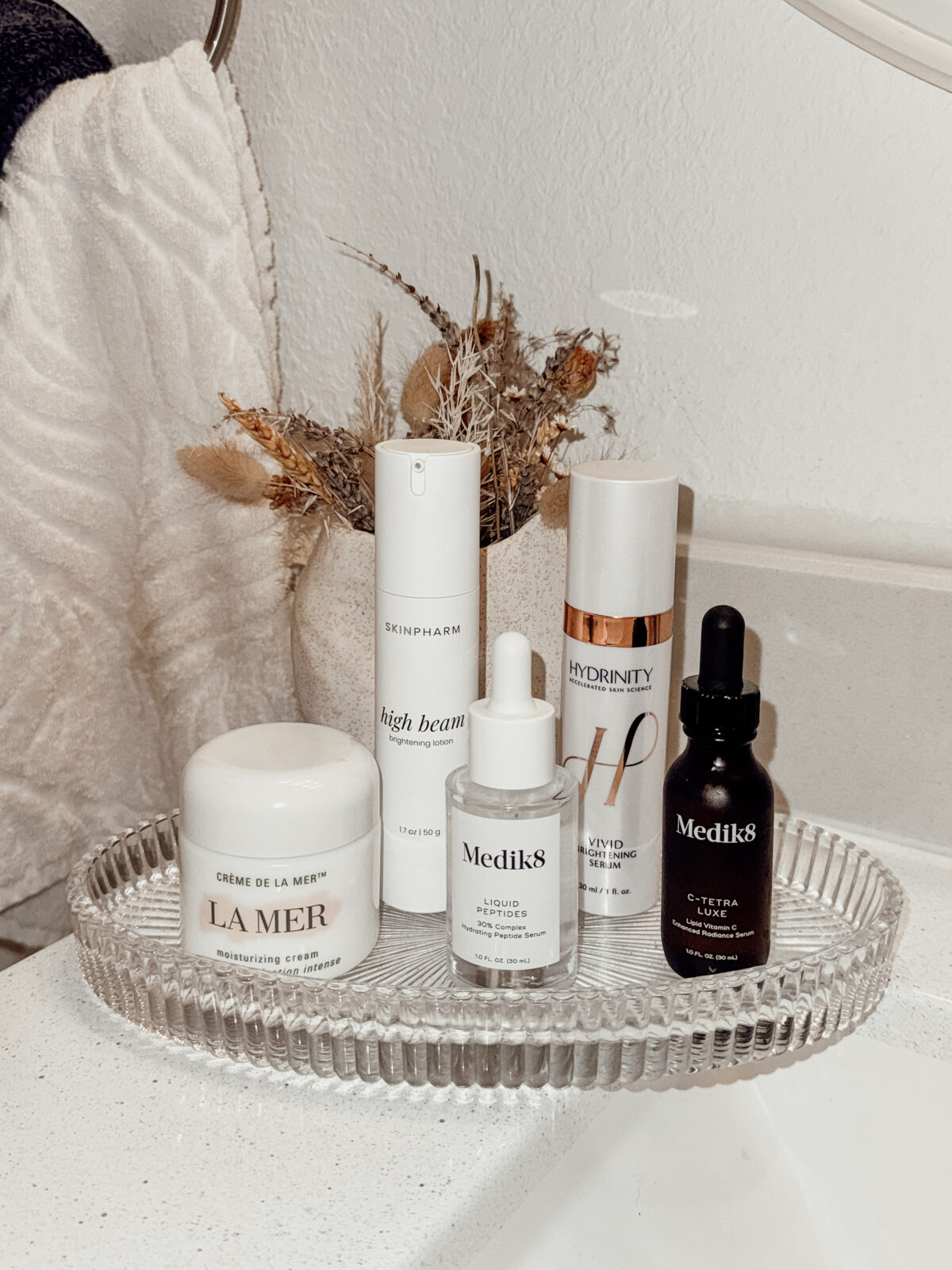 I wanted to share the exact products I’m using right now for my AM and PM skincare routines. A few of my favorite brands have always been Sisley Paris, La Mer, SkinBetter, and Skin Medica. Recently, I discovered Hydrinity and Medik8 which both have incredible products and decent prices.