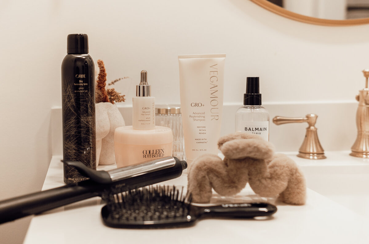 In 2022, I lost a LOT of hair due to several surgeries, extreme stress, and other things. It took me about a year to get my hair back to normal. BUT… The good news is I was able to get it back! Many of you have asked about my “hair growth journey” so I’m finally sharing the products I used and still use below.