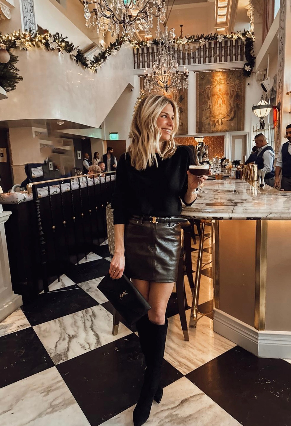Leather can elevate an outfit, but, unless it’s done right, I wouldn’t wear head to toe leather or leather that is too tight. Remember Ross in that Friends episode? Haha. I love a leather skirt moment because it’s a balance of classy and sexy and if you wish to, you can pair your outfit with a leather jacket with a skirt, as this works and actually looks cute without it being too much.