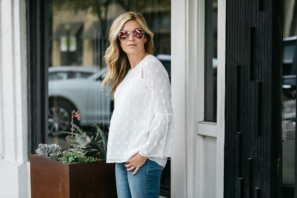 Even though these jeans are “casual” I dressed them up last weekend with a cute off the shoulder top and heels for drinks with my OKC blogger friends. All of these casual spring basics are pieces you’ll wear over and over this spring.